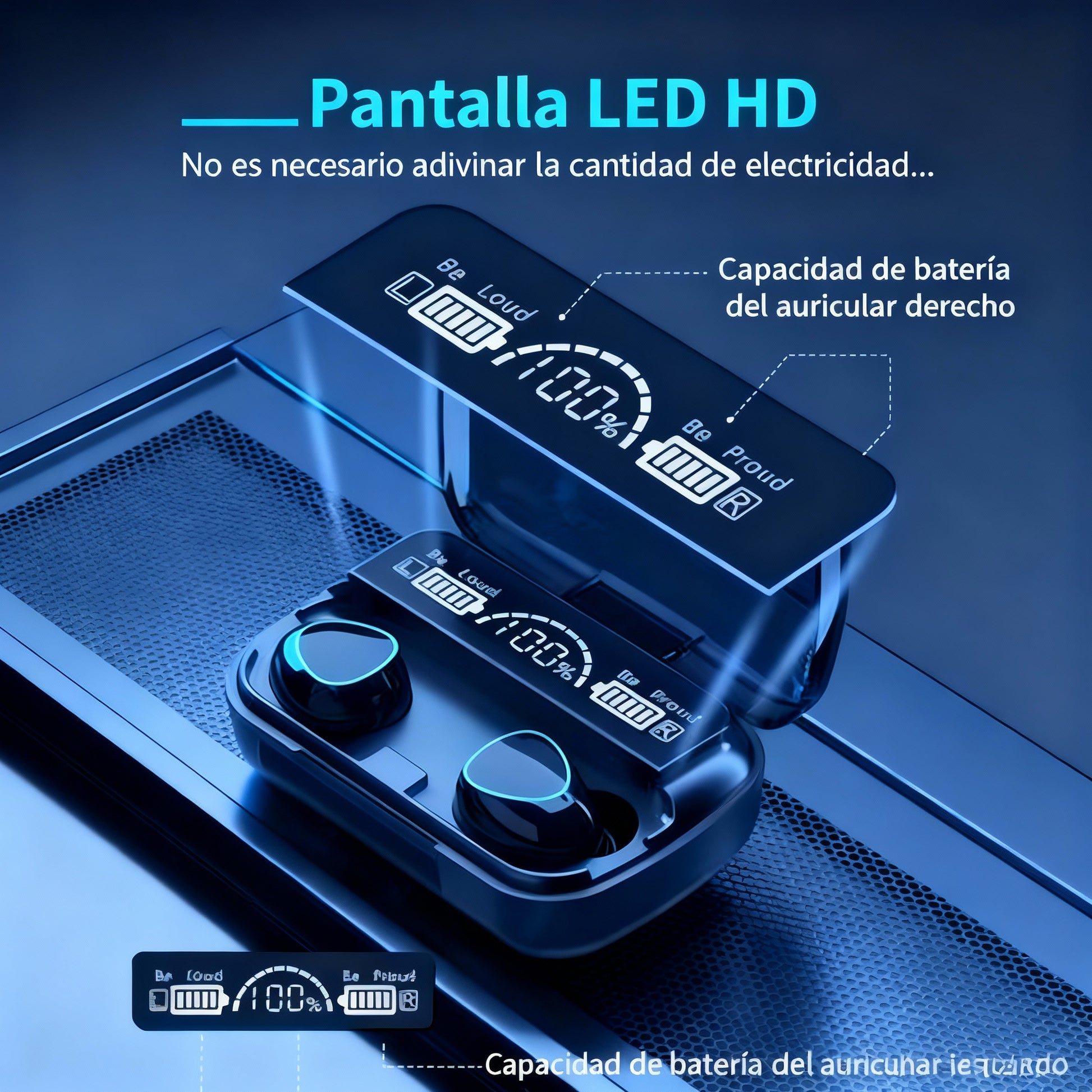 💡 Pantalla LED + Cierre Magnético: Visualiza la batería del estuche y los auriculares fácilmente.